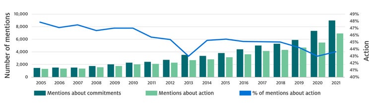 企業が掲げる持続可能性に関するコミットメントと、実際に行っている行動の間にはギャップが広がっています。