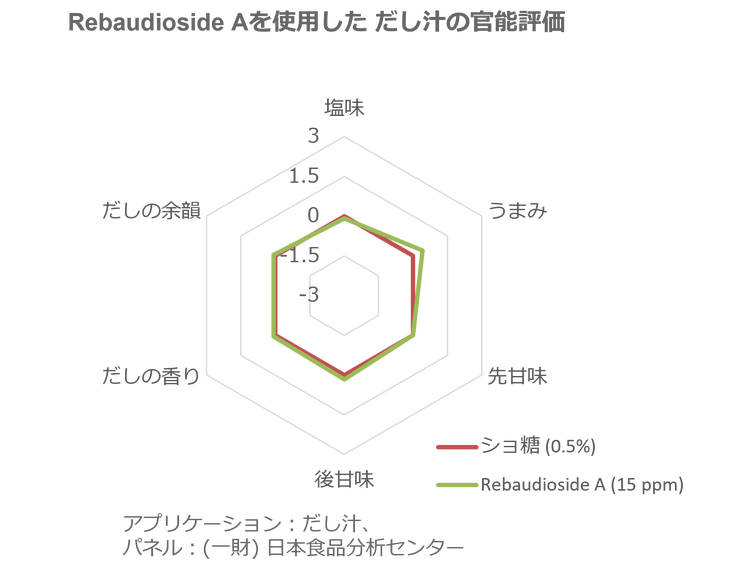 - Rebaudioside Aの含有量は97%以上と精製度の高い製品で、通常のステビア甘味料と比較して甘味の発現が速くなっています