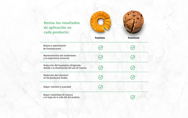 Con la sustitución de huevos en las formulaciones, los pasteles y panetones obtienen:
